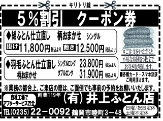 2025-04-07 ▲ふとん仕立て直し。 ▲ふとん仕立て直し。 井上ふとん店 鶴岡市睦町 TEL0235-22-0092 山形県鶴岡市酒田市へのチラシのポスティングは 株式会社 遊眠工房 山形県鶴岡市 http://beauty.tyo.ne.jp/po.html